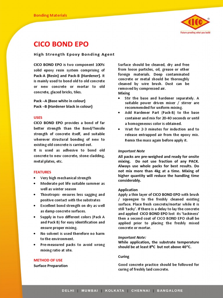 Flexi bond 540 is a two component 100 solids moisture insensitive epoxy bonding agent.