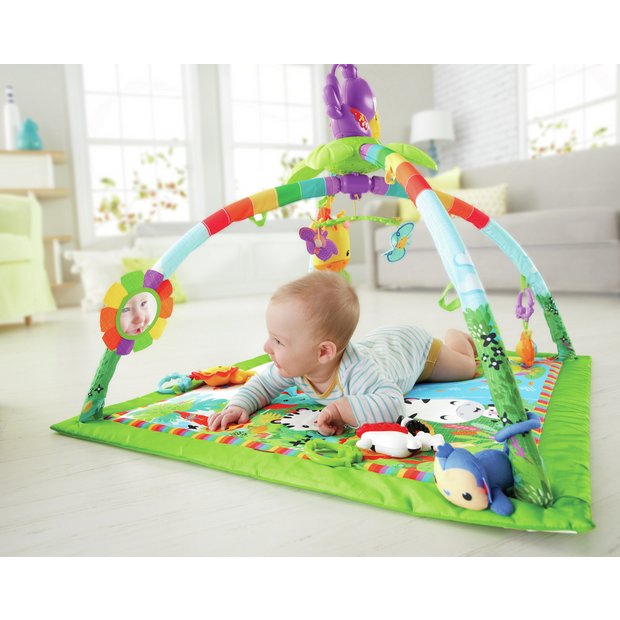 Bring the exciting world of the rainforest to life with the fisher price rainforest melodies lights deluxe gym.